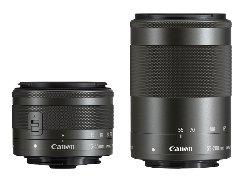 Comprend un objectif EF-M 15-45mm f/3.5-6.3 IS STM polyvalent pour les grands angles de vue et les portraits, ainsi qu'un téléobjectif EF-M 55-200mm f/4.5-6.3 IS STM pour que les sujets lointains apparaissent beaucoup plus proches. Les deux objectifs possèdent un stabilisateur d'image pour des résultats ultra-précis en basse lumière.