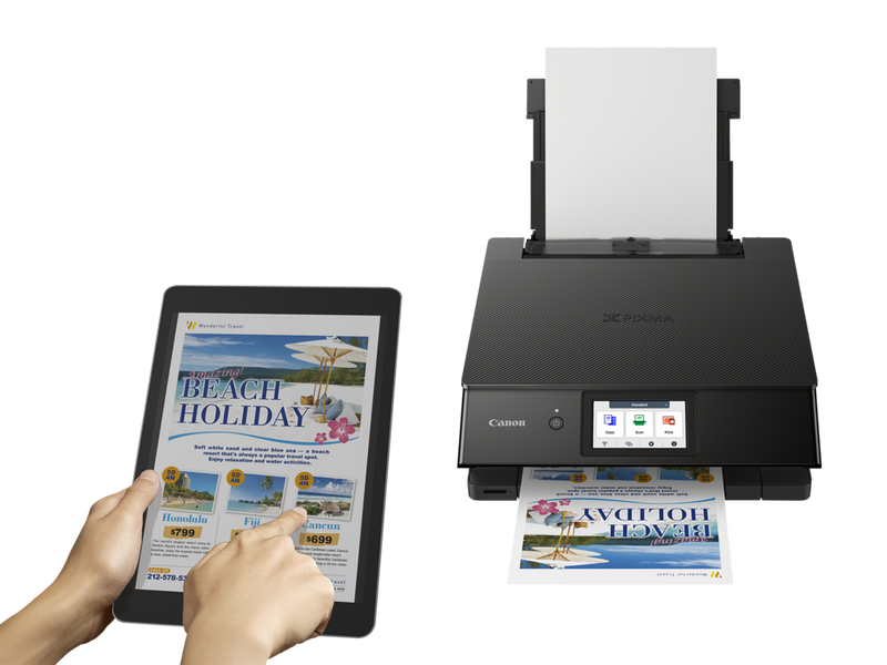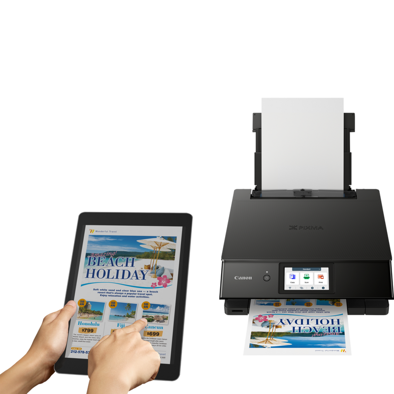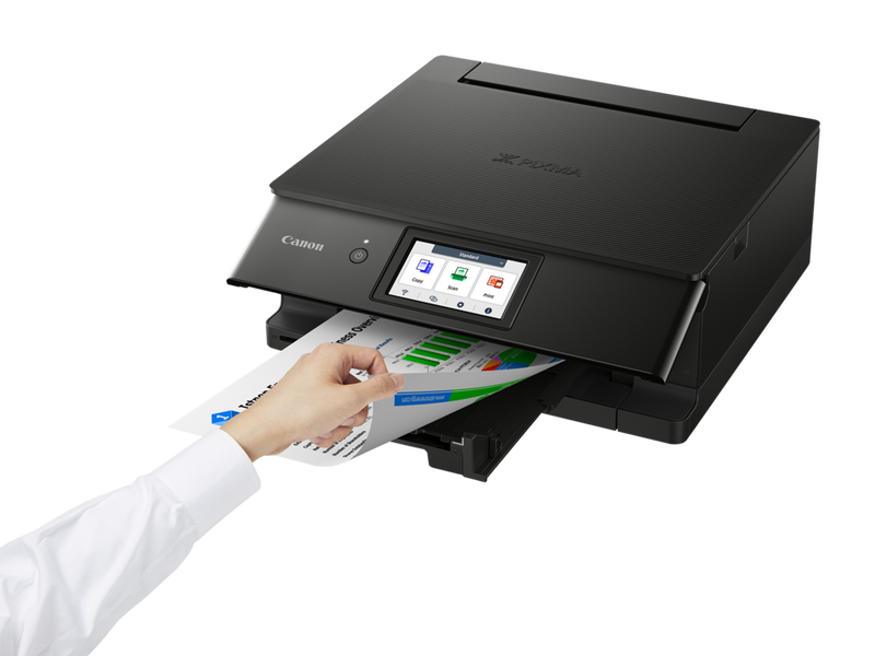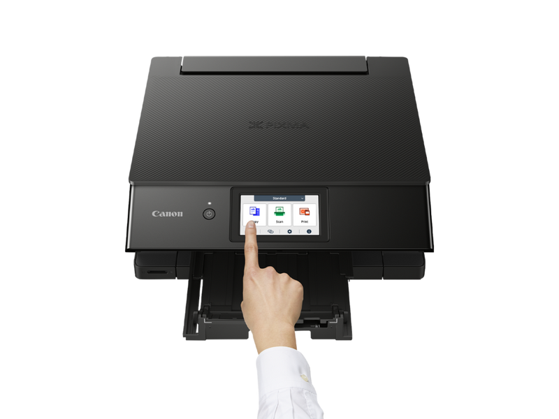 L'imprimante Canon PIXMA TS8750 est facile à utiliser grâce à son grand écran inclinable de 10,8 cm et à son interface utilisateur modulable tactile rationalisée et personnalisable, qui simplifie plus que jamais l'accès aux fonctionnalités et aux paramètres.