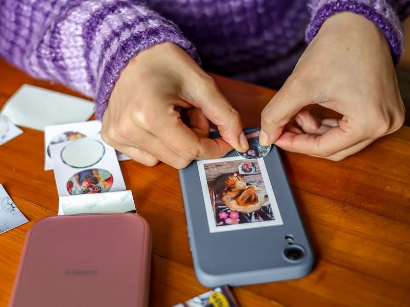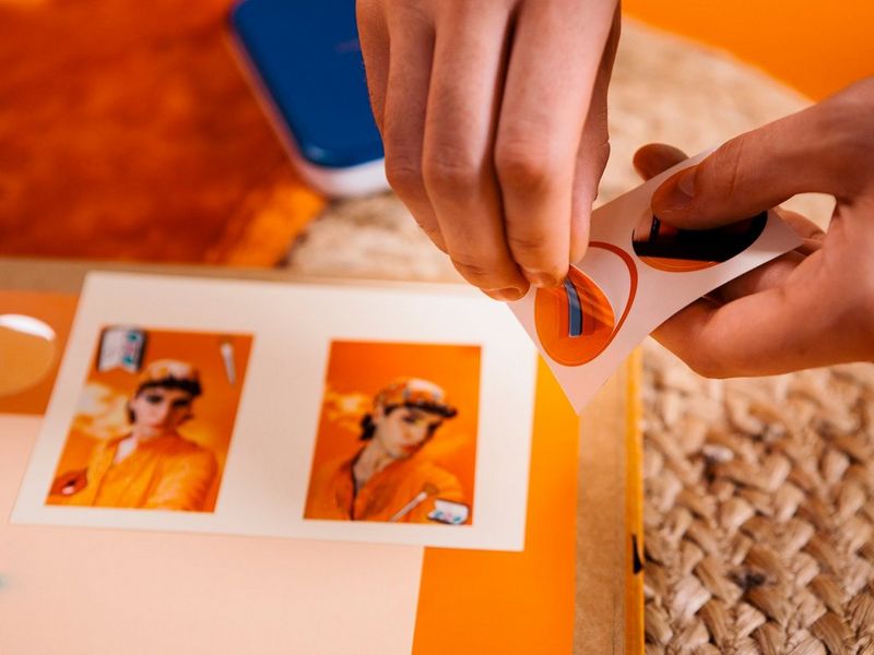 Décollez l'arrière du papier photo ZINK™ pour transformer vos photos en autocollants personnalisés, prêts à être partagés ou affichés.
